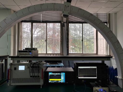 电压信号控制电磁材料中二极管的工作状态,实现对电磁波辐射和散射的动态调控,通过接收天线接收信号,矢量网络分析仪分析信号测试电磁材料对电磁波的调控效果。